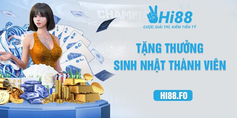 Nhà cái khuyến mãi tặng thưởng sinh nhật từ Hi88 mang đến cho các thành viên một cơ hội tuyệt vời để tận hưởng những lợi ích đặc biệt vào ngày sinh nhật của mình.